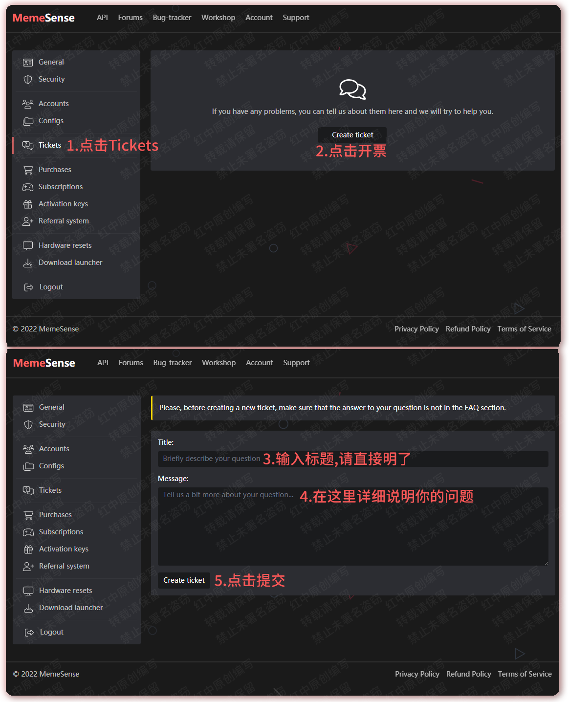 Game-其他游戏菜单教程CS2MemeSenseMemeSense 开票教程MemeSense 开票教程 进入并登录官网 🎮官网 ⚠️信息 标题:如果你需要解绑就写HWID RESET这样简单明了 内容:说明为什么需要解绑以及提交对应信息,比如新电脑/重装系统之类的