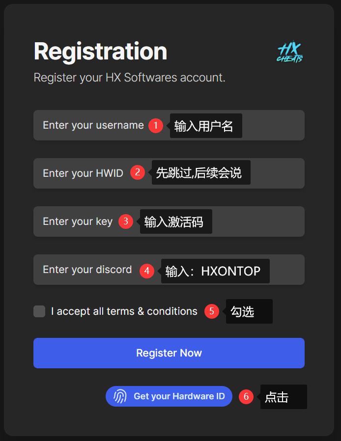 最后一行填:HXONTOP 不行的话填你自己的discord id