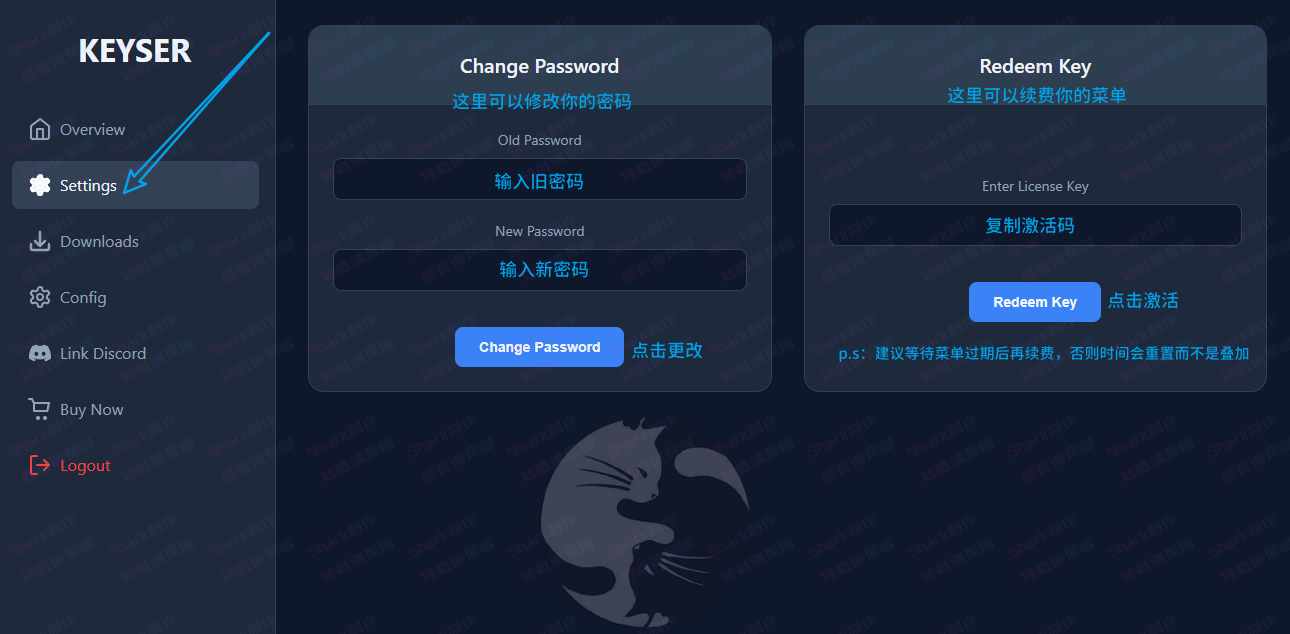 Keyser 改密码 续费
