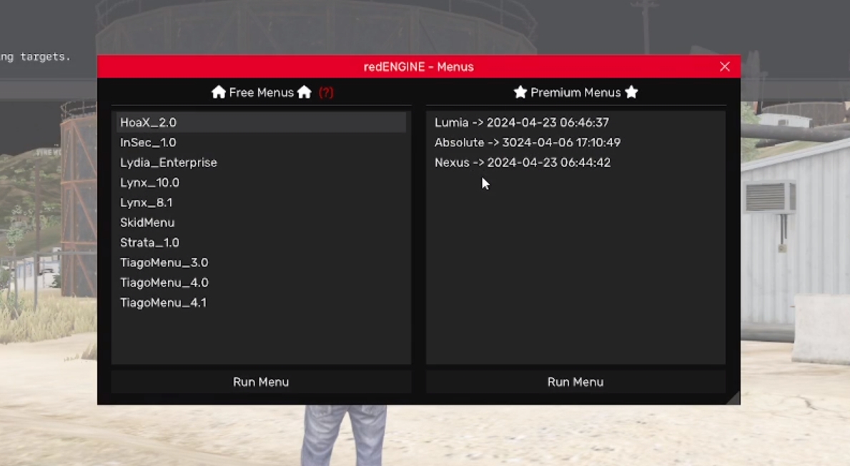 然后加载你需要的菜单,点击Run Menu