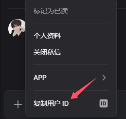 在开启开发者模式后,鼠标右键你的头像,点击复制用户ID即可