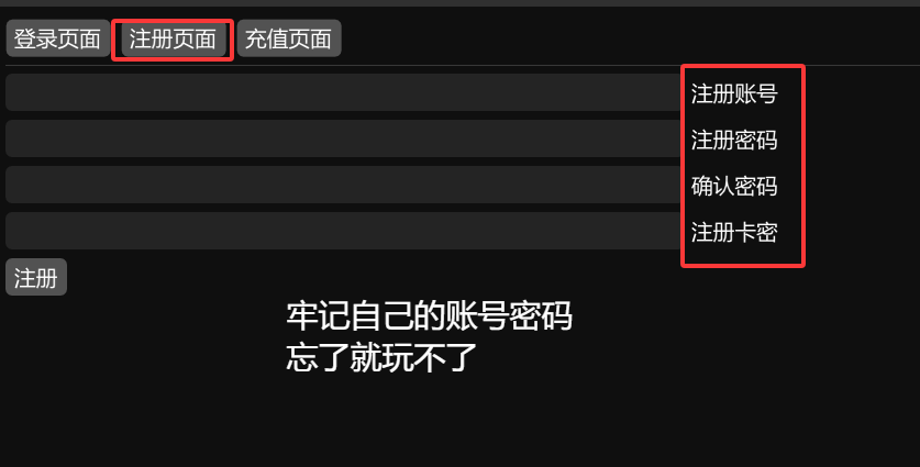 - 注册任何菜单的账号密码与游戏内的完全无关,选适合你的独一无二的好记的