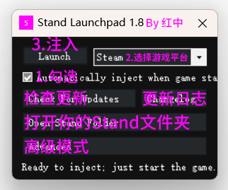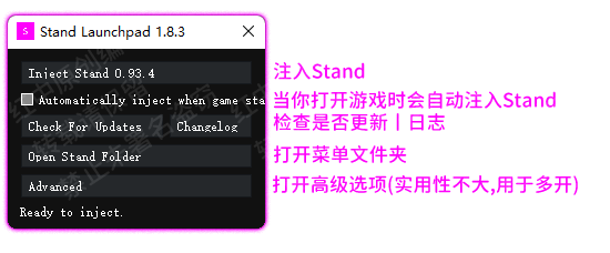 简单说明就是,保存你的注入码,每次注入只需要正常按照教程注入即可,不需登录Stand官网来刷新注入码