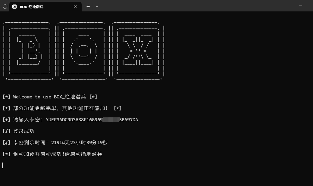 然后按住ALT+TAB键可切换到程序框,点击程序框后按下F3,就会提示注入成功,BOX启动