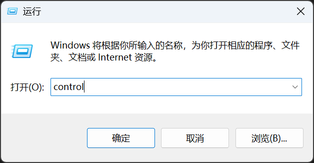 win+R打开运行窗口,输入control