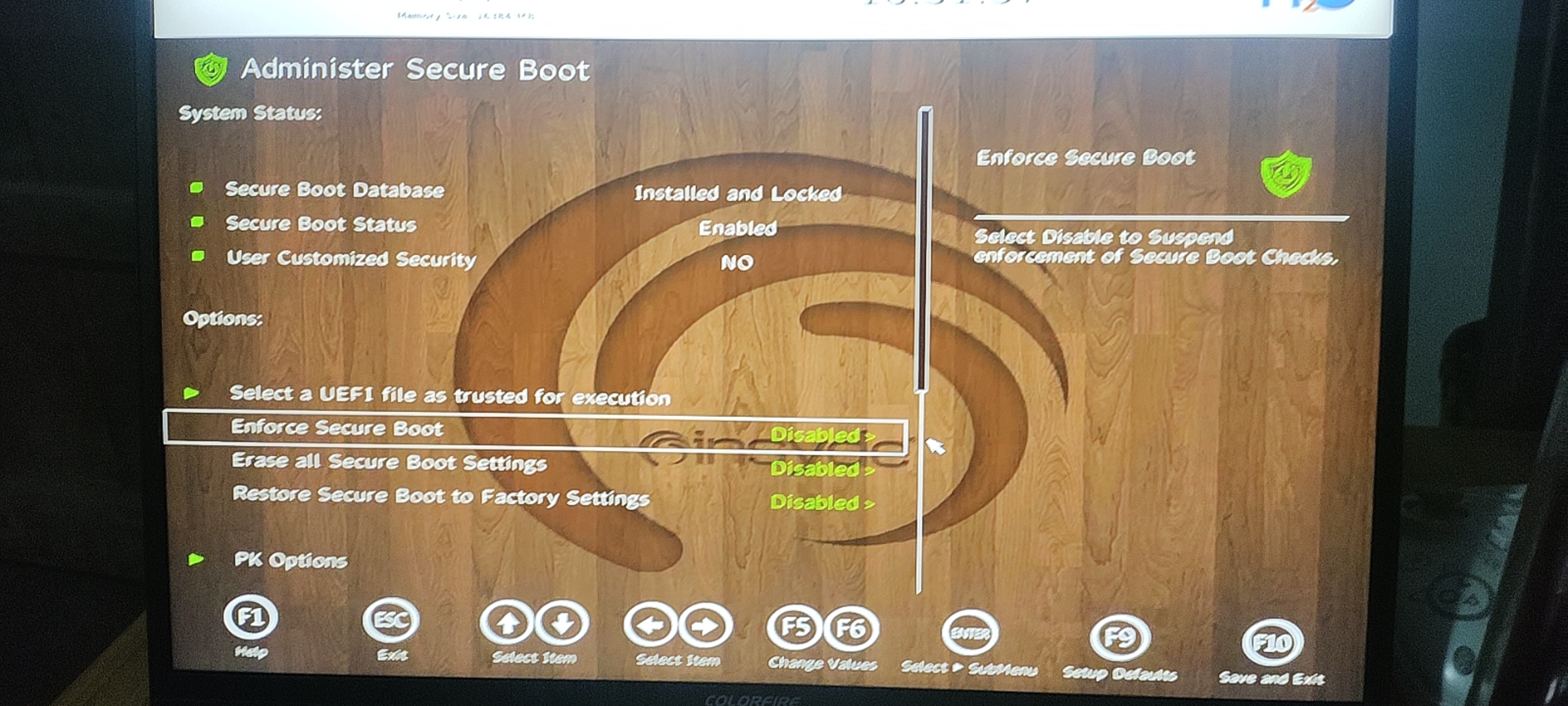 重启一直点F2进入BIOS 点左边Secrue boot